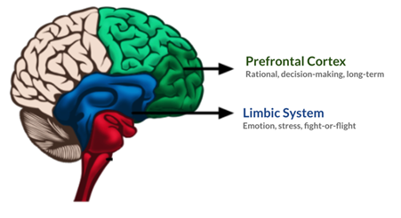 The brain is made up of three parts. The brain develops from the bottom up (Van Der Kolk, 2014). The reptilian brain develops in the womb – it’s also very responsive to threat throughout life. The limbic brain is developed and organised through the first six years of life and continues to evolve. Trauma can impact this part of the brain and how it functions. The last part to develop is the prefrontal cortex – this part is also affected by trauma exposure. This part can almost go off line in response to a perceived threat.